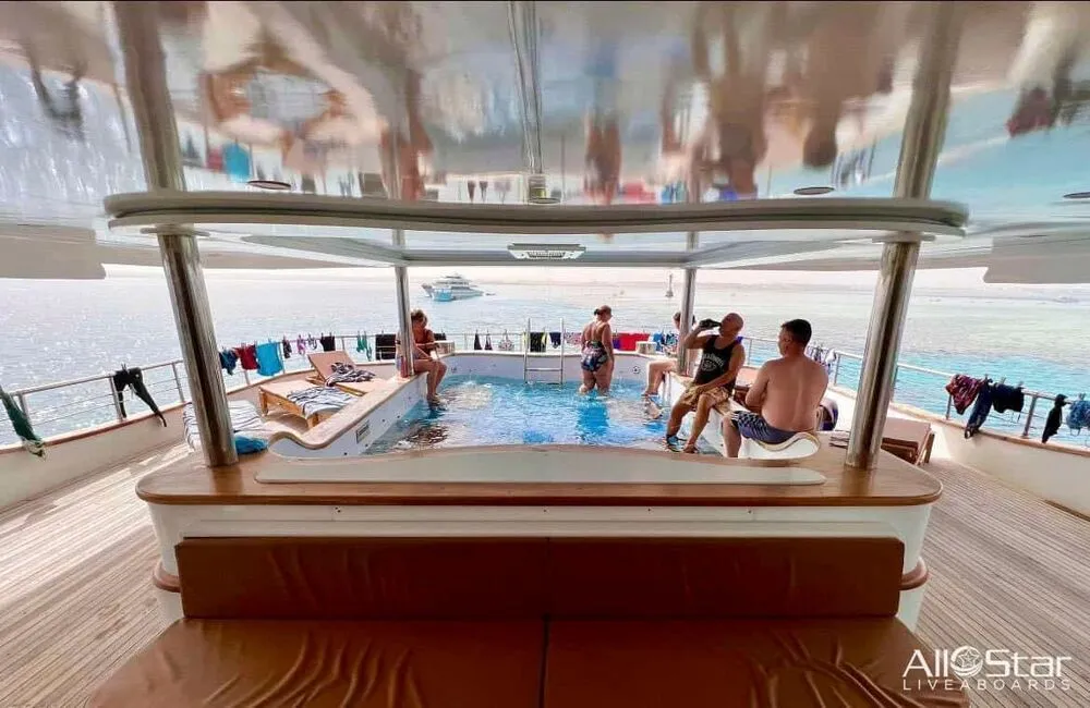 All Star Scuba Scene est un bateau de croisière spacieux conçu pour les plongeurs, et c’est le plus récent à explorer la mer Rouge en Égypte. La décoration moderne utilise des tons terreux chaleureux et des meubles clairs accueillants. Il peut accueillir jusqu’à 28 invités sur cinq ponts. Pour le confort des plongeurs, le pont de plongée ombragé dispose de rangements pour le matériel et d’une table pour les appareils photo. Il comprend de nombreuses fonctionnalités de sécurité, ce qui en fait l’un des liveaboards les plus sûrs de la mer Rouge.