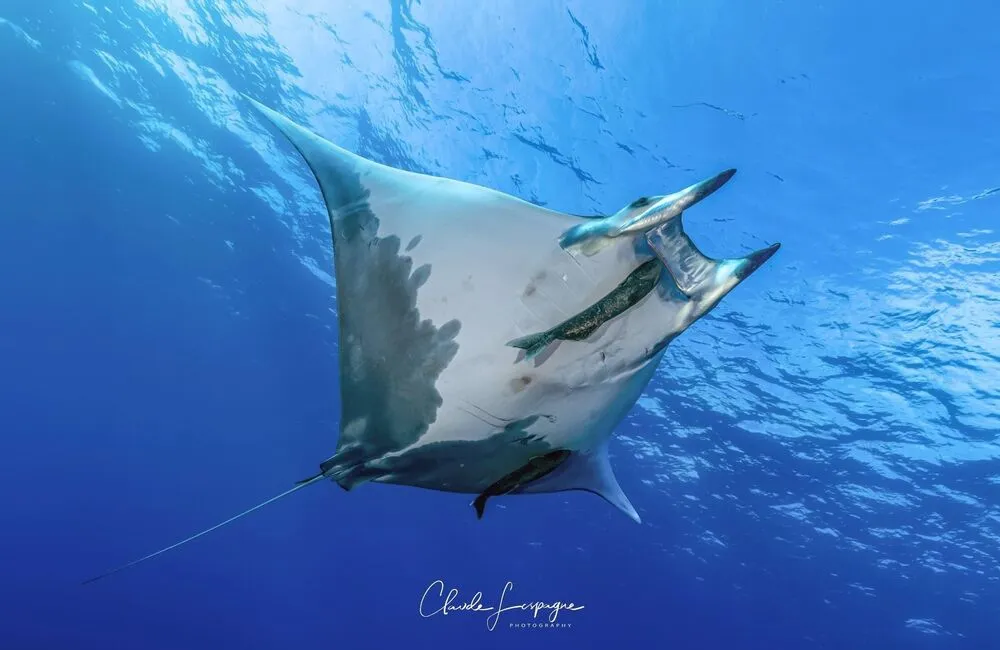 Selon la saison, nos plongées offrent aussi la chance de croiser dauphins, tortues marines et, durant l’hiver austral, d’observer les baleines à bosse longeant la côte.