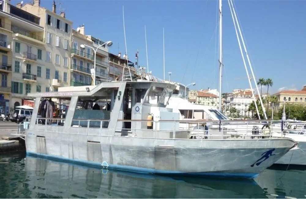 Amarré au milieu du Quai Saint-Pierre dans le Vieux Port de Cannes,